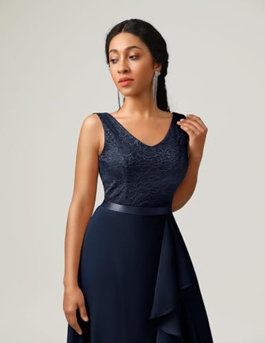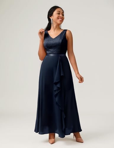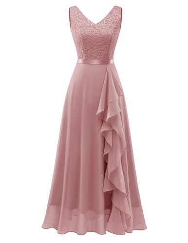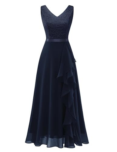 - Vacker design: Aftonklänningen har en V-ringning, är ärmlös, har veckad fåll med premium blommig spets på ovansidan, chiffong flödande, golvlång, fullt fodrad, ogenomskinlig och sexig design kommer att lägga till en touch av glamour till dig.