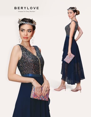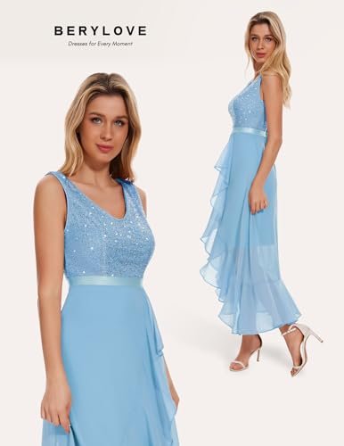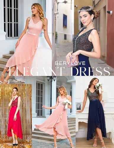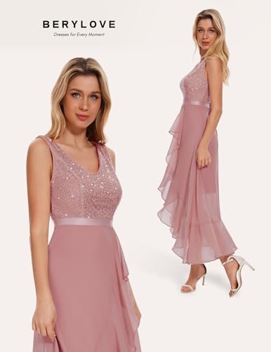 Berylove aftonklänning lång elegant för bröllop glitterklänning