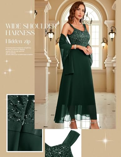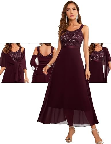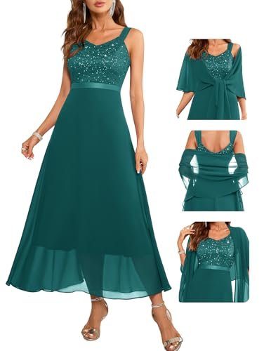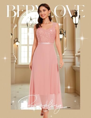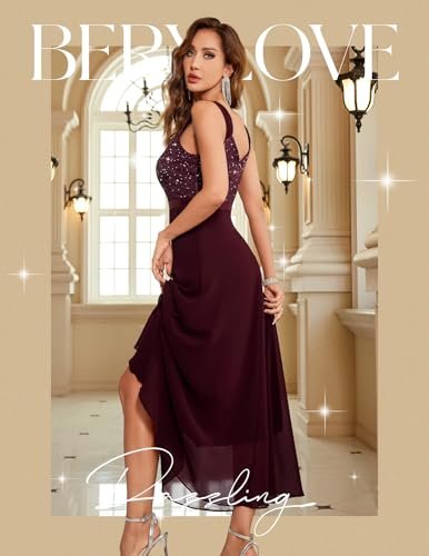 Berylove Damaftonklänning, lång paljettklänning, cocktailklänning, elegant för bröllop