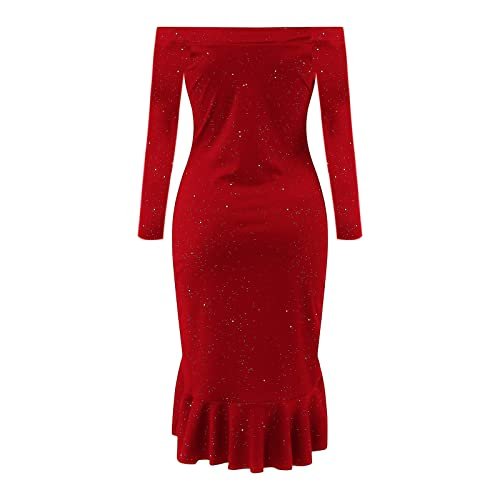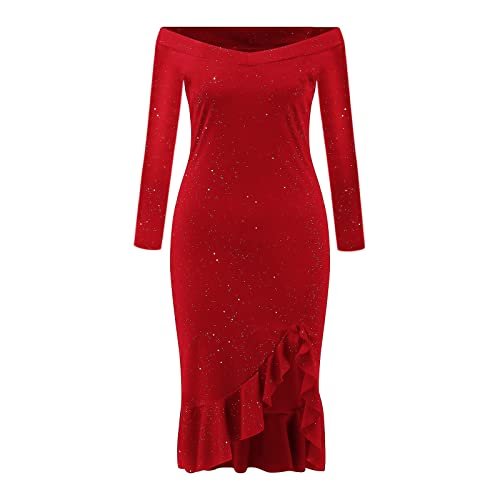 BOTCAM Festklänning dam sexig glitter axellös klänning kortärmad/långärmad...