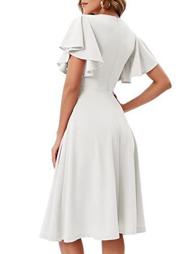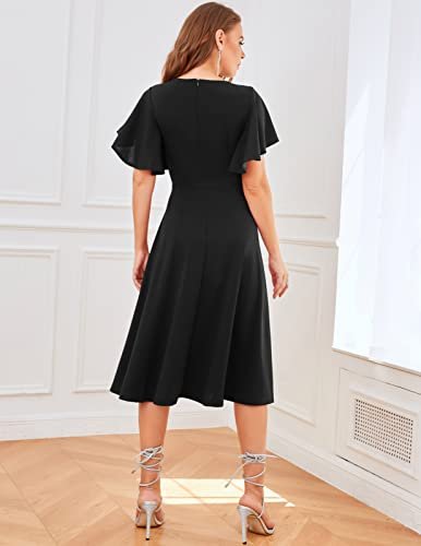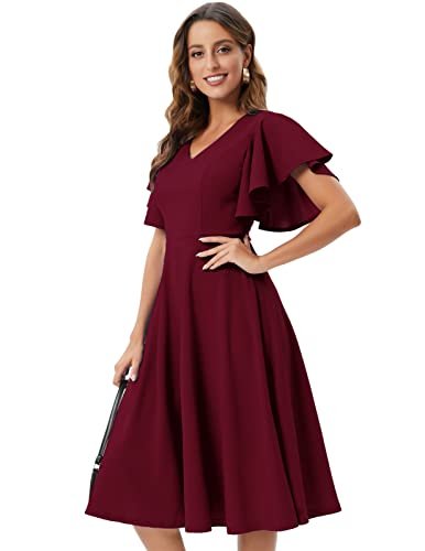 - [Cocktailklänning dam] detaljer: Unika utsvängda ärmar, förförisk V-ringad i rockabilly-stil, högkvalitativ dragkedja på baksidan, medellång swing-festklänning, elegant och alltid trendig. Lämplig för vardagen, gå ut, shoppa eller för ett möte.