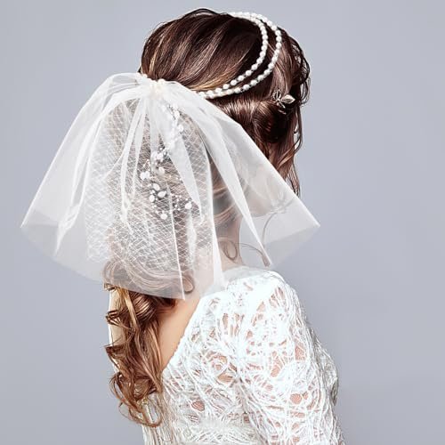 - 👰👰👰 ✦➣✦➣ UNDERBART HANTVERK GER BÄRAREN EN VACKER OCH ATTRAKTIV LOOK, SOM ÄR DEKORATIV OCH DELIKAT. BRÖLLOPSHUVUDBONAD: huvudslöjan har pärldekor och enkel skönhet, vilket gör bäraren charmig och vacker.