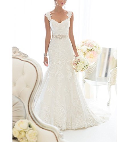 Changjie Spets bröllopsklänning för kvinnor, Vitt, 36 SE