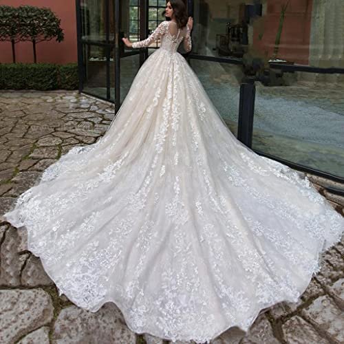 • ★ Material: Vit lång brudbröllopsklänning av högkvalitativ spets och tyll. Med rätt applikation och avslutande design ser den romantisk och elegant ut utan att vara påträngande.