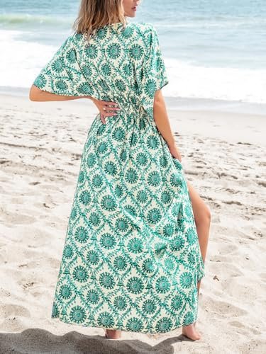 • [Funktioner]: Sommarklänningar för kvinnor / gröna maxiklänningar / strand boho-klänningar / halv Dolmanärm doppande v-ringad klänning / Empired midja sidoslits klänning / bohemisk atmosfär solklänningar / avslappnade semesterklänningar