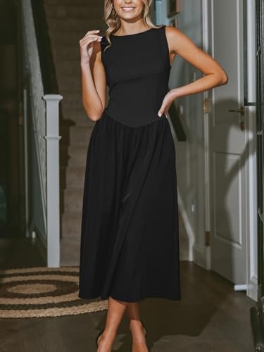 Funktioner: festklänningar för kvinnor 2024; rund hals klänning för kvinnor; ärmlös klänning; maxiklänning för kvinnor; en linjeklänning; formell klänning för kvinnor; svart klänning; långa klänningar för kvinnor 2024; klänning för kvinnor med fickor; stickad klänning; avslappnad klänning för kvinnor 2024