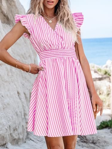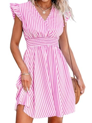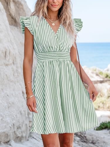 CUPSHE Miniklänning för kvinnor V-ringad fladdrande ärm randig...