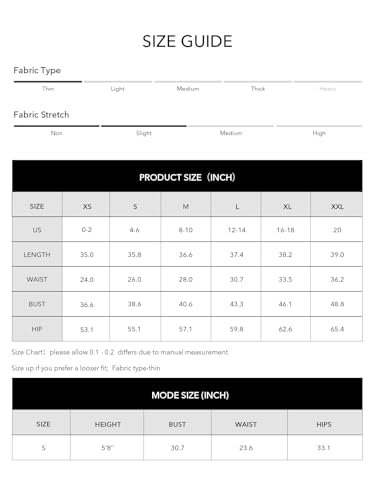 - [Perfekt storlek]: Finns i XS=UK (4-6), S=UK (8-10), M=UK (12-14), L=UK (16-18), XL=UK (20-22), XXL=UK (24-26). Se vår storlekstabell för specifika mått för att uppnå perfekt passform. Modellbärande storlek S: Höjd: 168 cm/5'6 tum, byst: 86 cm/34 tum, midja: 63 cm/25 tum Höft: 76 cm/30 tum
