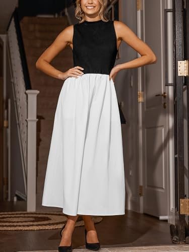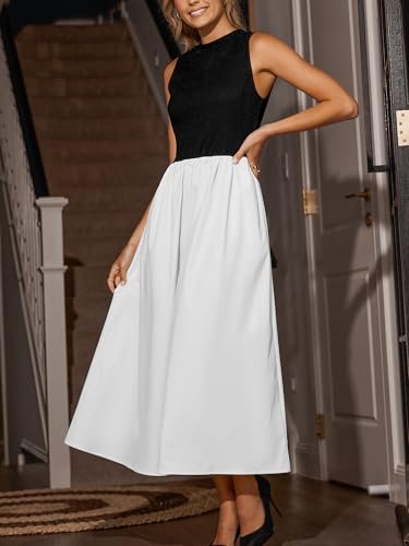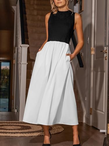 Mångsidig klänning: ärmlös klänning för kvinnor; vardaglig klänning för kvinnor; klänning med rund hals, svart och vit klänning för kvinnor; maxiklänning för kvinnor; festklänning för kvinnor; klänning med fickor; stickade toppar på klänningen; en linjeklänning; lägg till en elegant och charm till dina evenemangsdagar