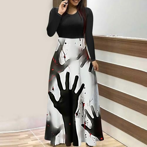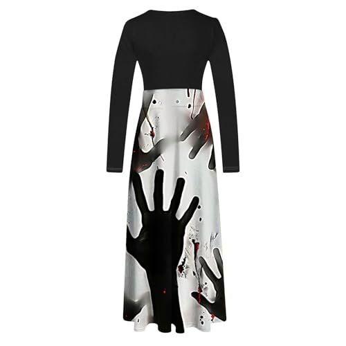 Dam elegant långärmad lång klänning, läskig halloween rund...