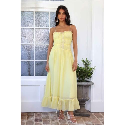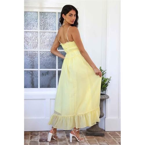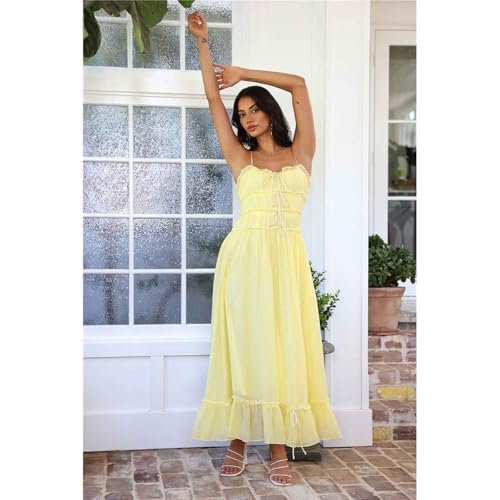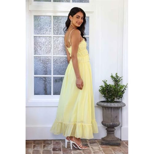 Dam sommar Spaghetti Strap Maxiklänning Fyrkantig Neck A-Line Flowy Lång Klänning Boho Backless Smocked Sundresses
