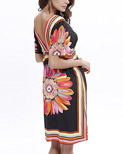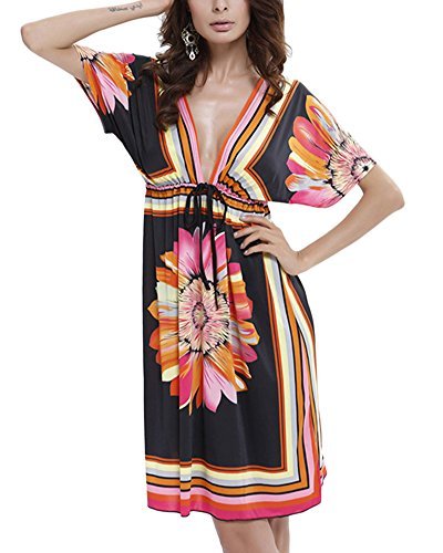 Dam v-ringad strandklänning sommarklänning kjol tryck aftonklänningar ärmlös...