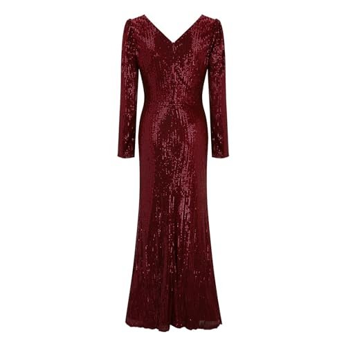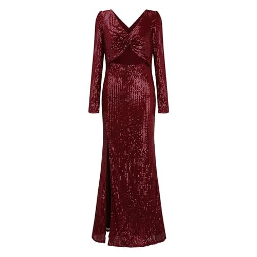 Damaftonklänningar formell elegant glitter paljettutskuren maxiklänning långärmad v-ringad...