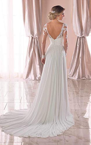 Damer chiffong bröllopsklänning med lång ärm djup v-ringad...