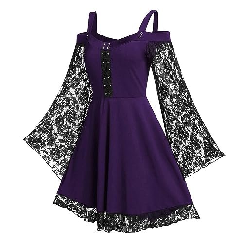 • Kvinnor hippie vintage gotisk grunge fisknät renässans bonde steampunk midi-klänning plusstorlek klänning för kvinnor spets långärmad spandex höst sommarklänning 2024 kläder trendig Y2K Thanksgiving