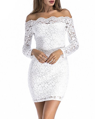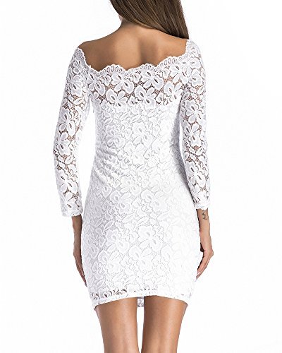 DianShao Partyklänning Axelbandslös spets Cocktail långärmad dam, Vitt och blått, 3XL