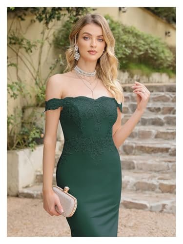 DYYEUAVT Brudtärneklänningar med axelbandslös, eleganta spets sjöjungfru långa...