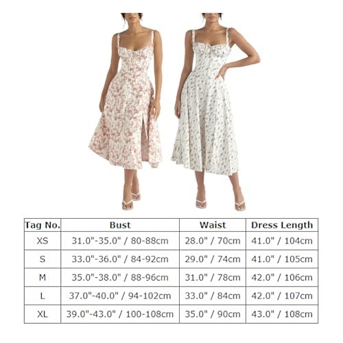 - Storlek: Den avslappnade, ärmlösa, långa blommiga sommarklänningen med snörning, korsett, slits och sexig A-linjeform finns i storlek XS, S, M, L och XL. Observera: Denna solklänning med korsett är liten i storleken så du kan välja en storlek större. Du kan enkelt hitta den perfekta passformen som smickrar din figur. Minilängden på korsettklänningen är kortare, se detaljstorleken i produktbilden innan du köper. Blommig korsettklänning för kvinnor, solklänning med korsett, klänning i Milk Maid-modell, bustierklänningar.