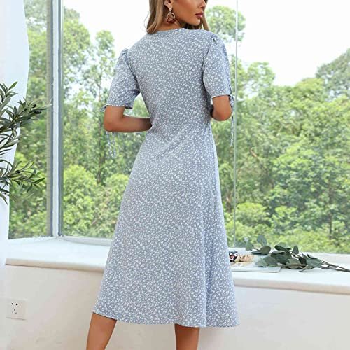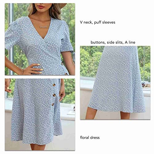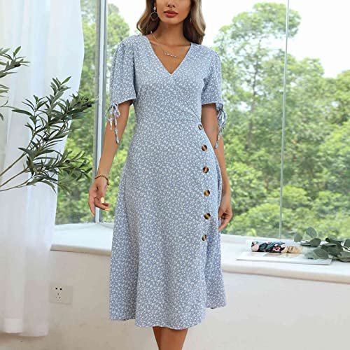 - 【Egenskaper】 V-hals, puffärmar, blommig klänning, knappar, sidoslitsar, A-linje, hög midja. Damer casual v-ringad klänningar kan tvättas i maskin eller handtvättas, blek inte, stryk vid låg temperatur om det behövs