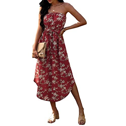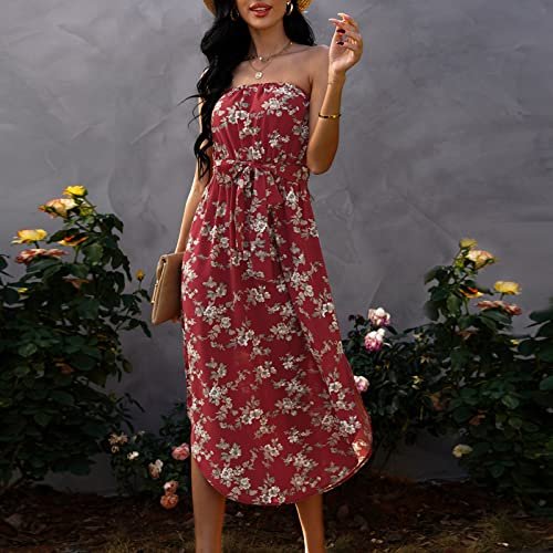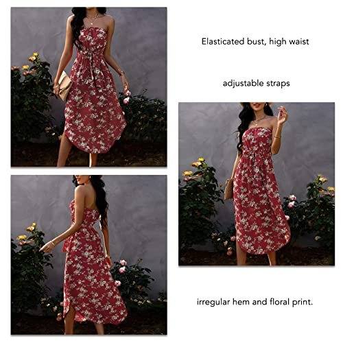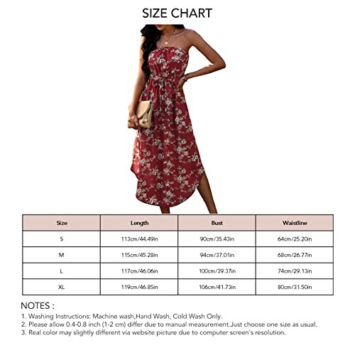 - [Enkel matchning]: Axelfria fritidsklänningar kan kombineras med klackar eller remsandaler och ser eleganta ut med halsband, örhängen, väskor och solhattar. Lång klänning med blomtryck kan tvättas i maskin eller handtvättas, blek inte, torka inte efter tvätt