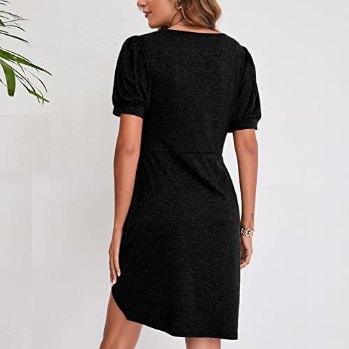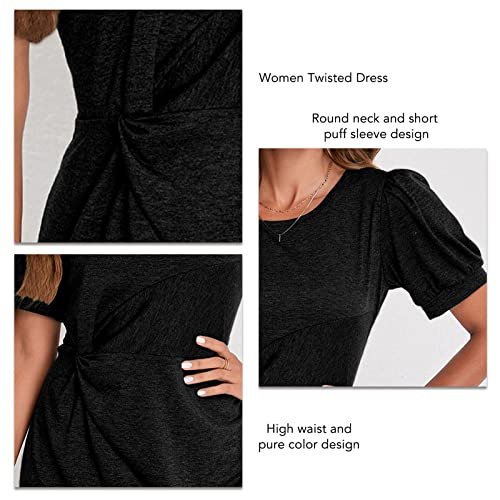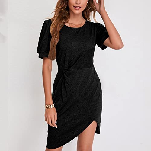 - [Rund hals och puffärmar]: Avslappnad skuren damklänning med rund hals och korta puffärmar och ren färgdesign, enkel och trendig som kan göra dig söt och vacker. Denna figurnära cocktailklänning med delad framsida och smalt snitt visar den kvinnliga attraktionskraften