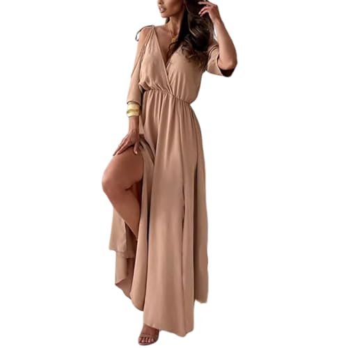 • [Egenskaper]: Den sexiga maxiklänning med djup V-ringning och slits har en hög midja, en djup V-ringning och en dubbel hög slits framtill. Den enfärgade klänningen för kvinnor och flickor ser sexig ut och kan betona din kropps linjer bättre och se mer fashionabel och elegant ut.
