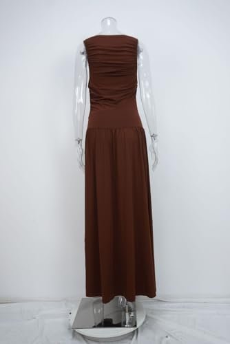 Elegant, ärmlös, volangmaxiklänning för kvinnor, rund hals, 2025, flödande, veckad, svängande A-linjeklänning, formell cocktailklänning för bröllopsgäster