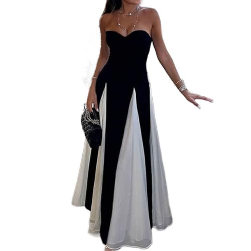 - Svartvit maxi balklänning för kvinnor, elegant, flödande färgblock-klänning, formell aftonklänning, chic swingklänning, balklänning