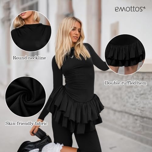 - Funktioner: miniklänning med rund hals, volangfåll, svart långärmad klänning, sexig bodycon klänning, smal passform, liten svart klänning, figursydd klänning, nattklubb miniklänning, enfärgad, så den unika designen gör dig trendig och iögonfallande.