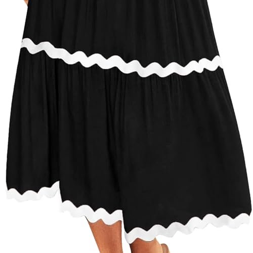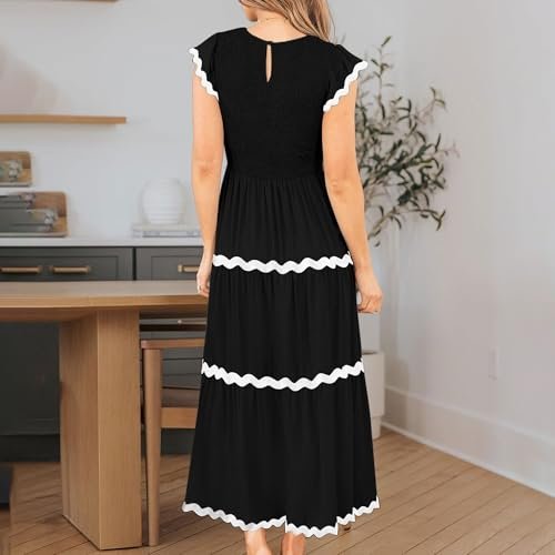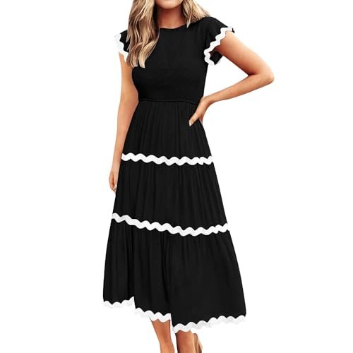 - Vår söta smockklänning har korta fladderärmar, rund hals, enfärgad, elastisk hög midja, vacker rickrack-design, flytande a-linje kjol i midi-längd, dragstängning, ingen dragkedja.