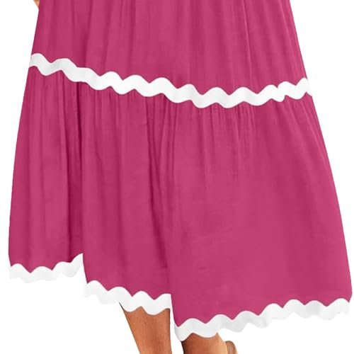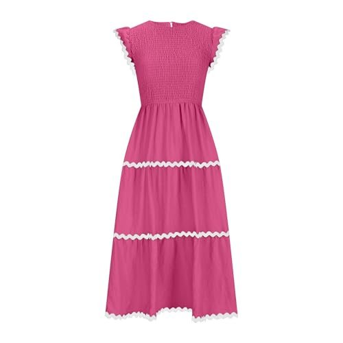 - Vår söta smockklänning har korta fladderärmar, rund hals, enfärgad, elastisk hög midja, vacker rickrack-design, flytande a-linje kjol i midi-längd, dragstängning, ingen dragkedja.