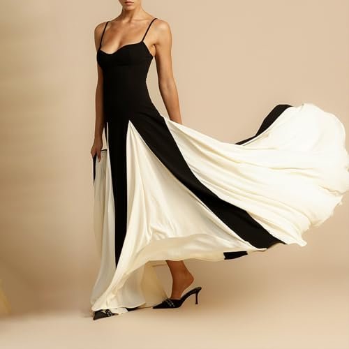 - Design: Sommar strandklänning för kvinnor, sexiga maxiklänningar för kvinnor, lågt snitt, ärmlös, färgblock, hög midja, en linje, lappverk klänning för kvinnor, kontrasterande veckad fåll maxiklänning för kvinnor