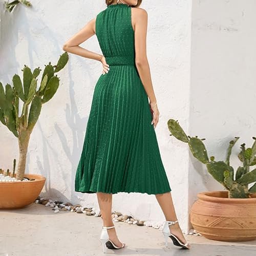 - VISAR PÅ DIN CHARMANDE: Ärmlös klänning är perfekt att bära på sommaren och känns sval hela dagen. Den här midiklänningen har en elastisk midja med smock, som inte kommer att vara för tight eller för lös utan krama din midja perfekt. Vacker Swiss Dot-klänning skapar en fräsch somrig atmosfär. Modest V-ringad klänning får dig att se graciös och charmig ut, ett bra komplement till din garderob