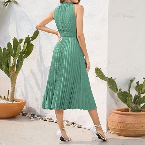 • VISAR PÅ DIN CHARMANDE: Ärmlös klänning är perfekt att bära på sommaren och känns sval hela dagen. Den här midiklänningen har en elastisk midja med smock, som inte kommer att vara för tight eller för lös utan krama din midja perfekt. Vacker Swiss Dot-klänning skapar en fräsch somrig atmosfär. Modest V-ringad klänning får dig att se graciös och charmig ut, ett bra komplement till din garderob