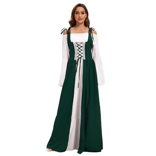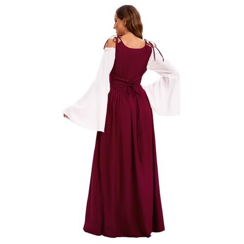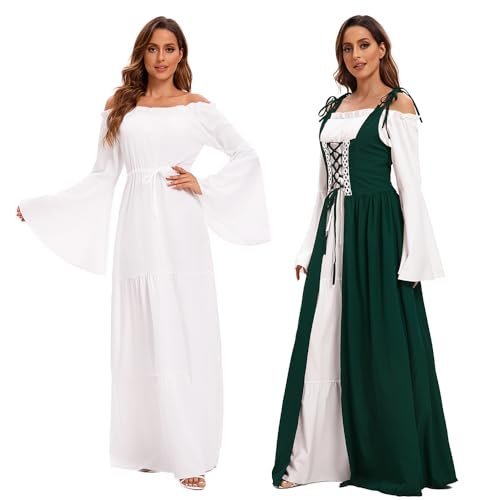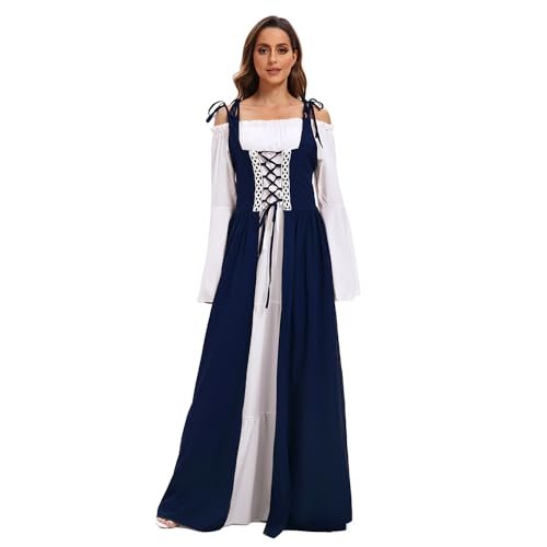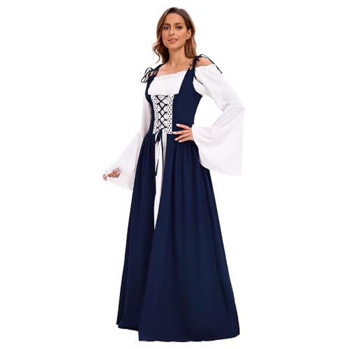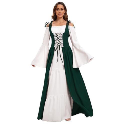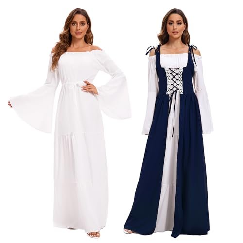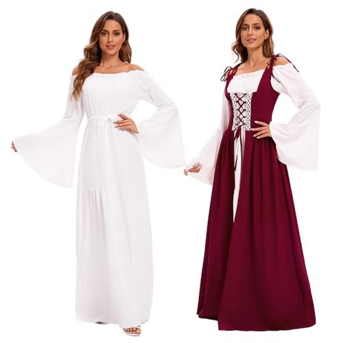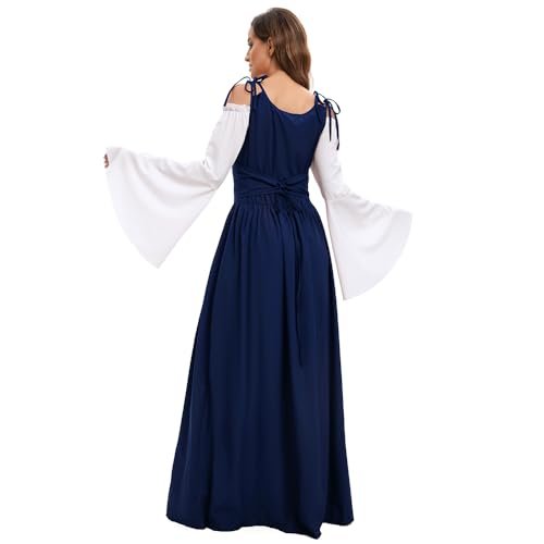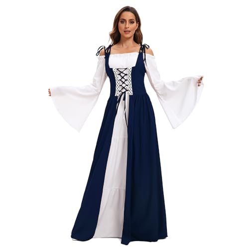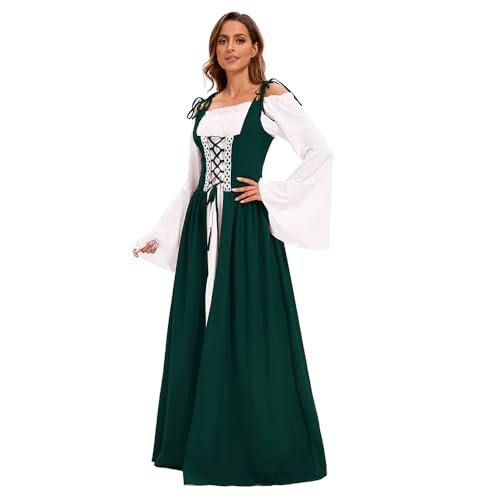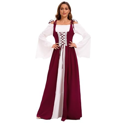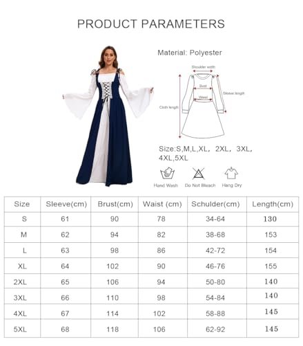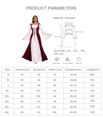 - 【Utmärkande design】: Med klockärmar, golvlång, hög midja, vintage-stil, snörning prinsessa, renässans medeltid, vintagestil, deluxe, elegant, gotisk. Snörning fram, axelband och skosnören bak som kan justeras till din figur. Den fantastiska designen som sätter dig i centrum vid varje evenemang!
