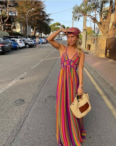 - ➤ Tyg: polyester 100%; Sexig djup v-ringad regnbåge rygglös klänning, mjuk och hudvänlig, lämplig för daglig slitage och sommarutflykt, strandklänningar vid havet foton!.