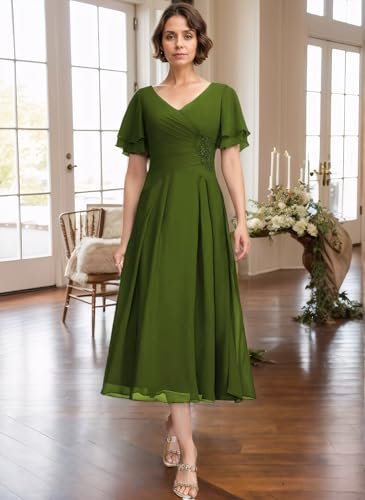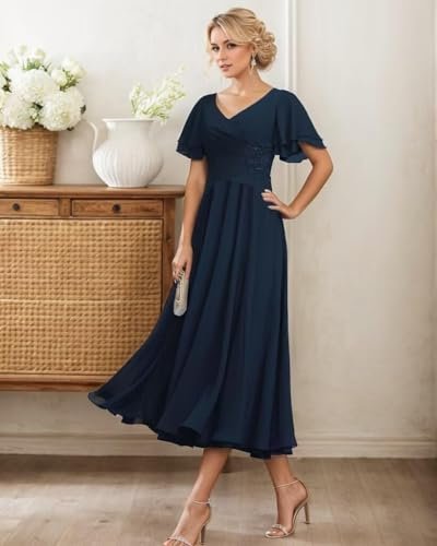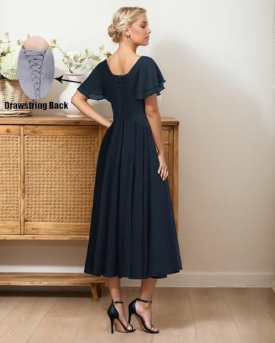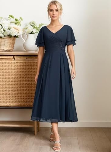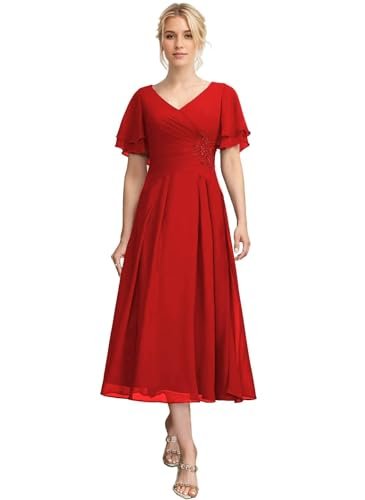 Generico Tea Length Brudens Mor Klänningar Chiffong Plisserad...