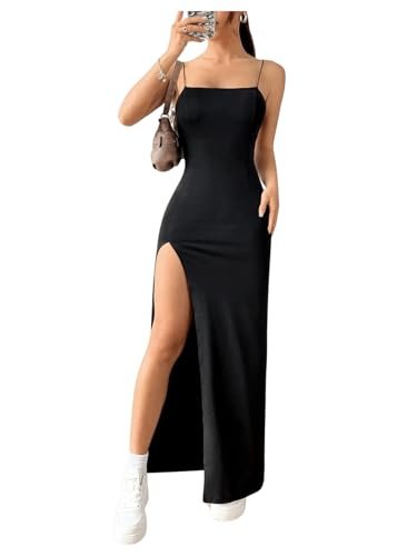 GORGLITTER Cami klänning dam elegant klänning med slits sommar spagettiremmar klänning lång sommarklänning sexig maxiklänning mängd