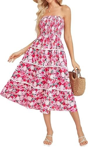 GRACE KARIN Dam blommor midiklänning A-linje kjol ärmlös...
