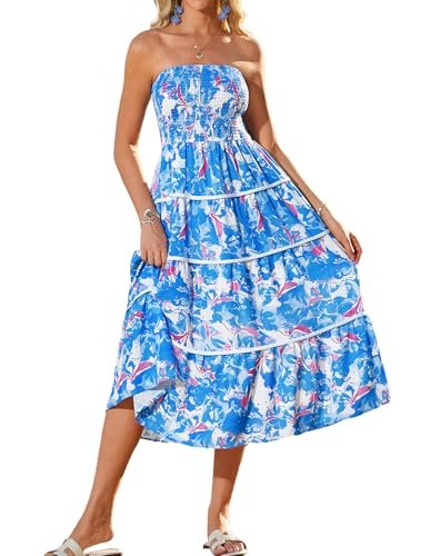 Klänningen är axelfri, vilket ger ett elegant och somrig utseende.