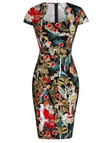 - Funktioner: Vintage pennklänning, lämplig för arbete, 50-talsstil, vingärmar; dragkedja bak, smal passform, enfärgad och mönsterfärg