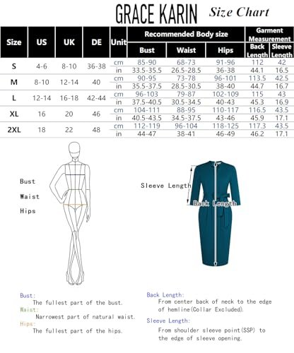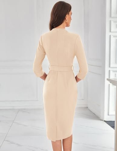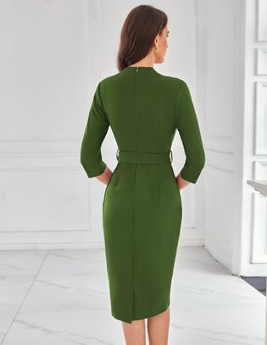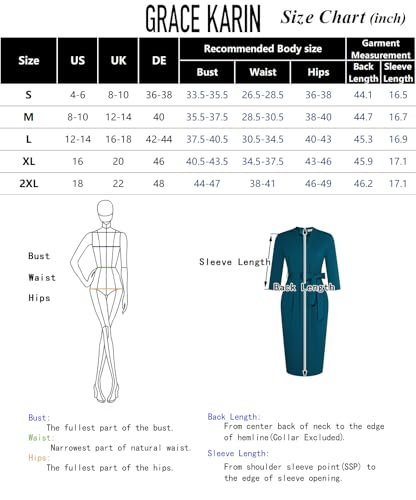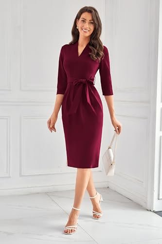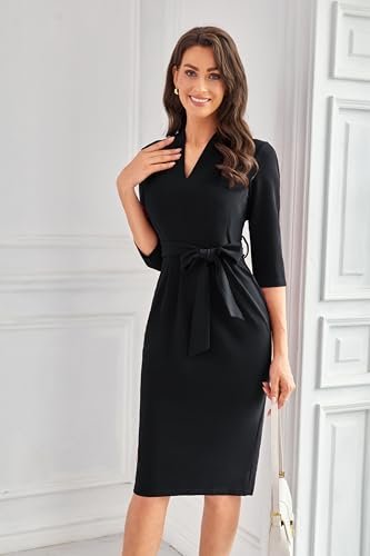 GRACE KARIN Dam cocktailklänning 3/4-ärm elegant midi-bodycon-klänning V-ringad...