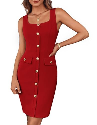 • 【Egenskaper】Denna ärmlösa klänning har en raffinerad fyrkantig urringning och eleganta knappdetaljer som skapar en tidlös och raffinerad look som är perfekt för alla tillfällen. Utrustad med ett elegant midjebälte kan du snöra in klänningens midja efter behag för att betona midjan och få en anpassad passform. Den enkla designen ger den en touch av elegans och gör den idealisk för formella tillfällen och avslappnade utflykter