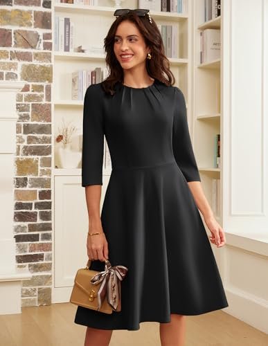 GRACE KARIN Dam elegant 3/4-ärm lång klänning avslappnad rund hals A-linje midi-klänningar, Vinrött, XL