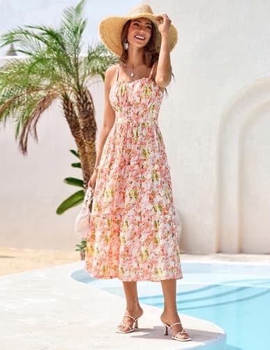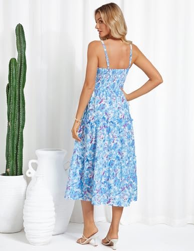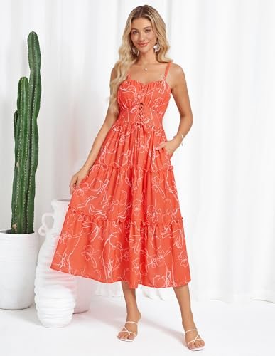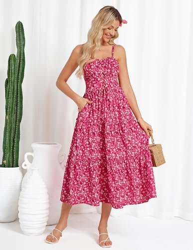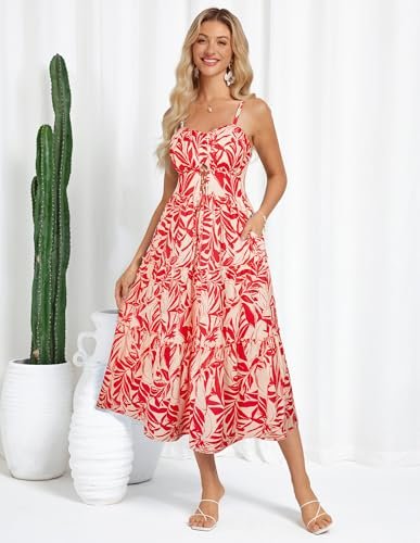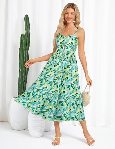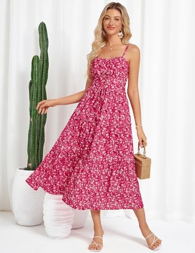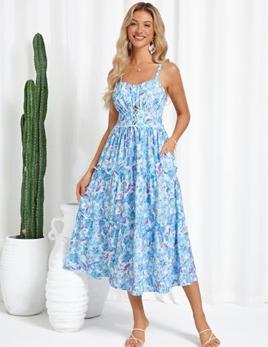 - Vacker blommig klänning: avslappnade A-linjeformade blommiga klänningar med spagettiband, i elegant vintage litet blommönster och enkelt ljust stort blommönster, mycket lämplig för vår och sommar