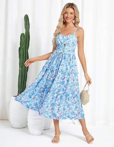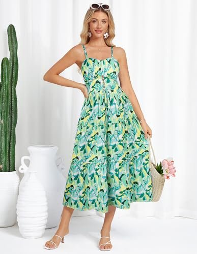 GRACE KARIN Dam sommar blommig maxiklänning A-linje spaghettirem...