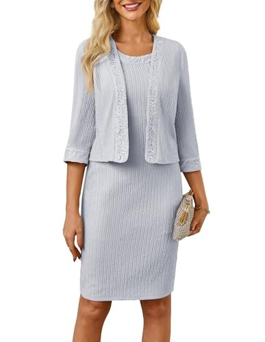 - Egenskaper: Brudens mor klänningar med jacka har rund hals, paljetter, spets, 3/4 ärmjacka, knälängd, 2 delar, dragkedja baktill. Detta Midi-klänningsset kan bäras tillsammans eller separat för flera stylingmöjligheter