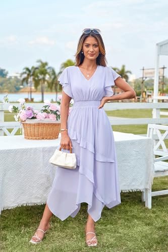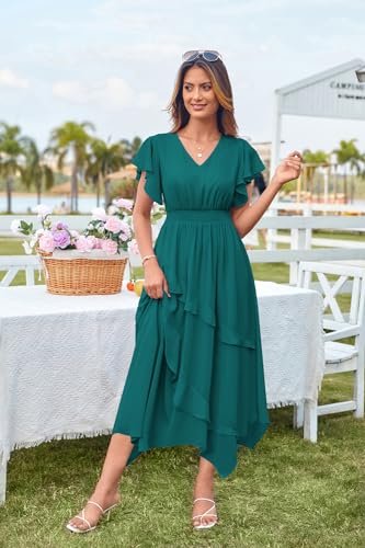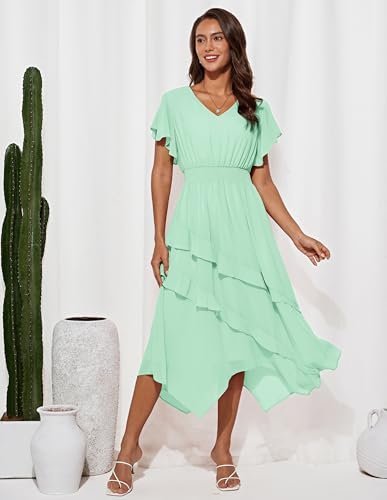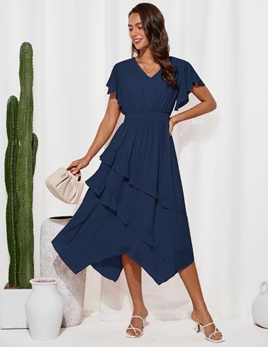 Grace Karin Damsommarklänning, ledig volanger ärmar, V-ringad, elastisk...