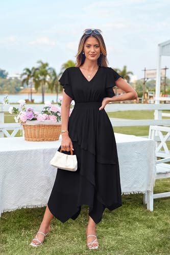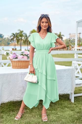 - Trendig design: Våra damklänningar har volangmanschetter, V-ringad och tunika, midjedesign, som kan visa din vackra figur; Dessutom har vår klänning en oregelbunden rynkad A-linje som fladdrar i vinden, vilket gör att den ser mer elegant ut