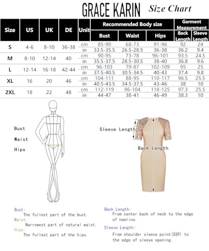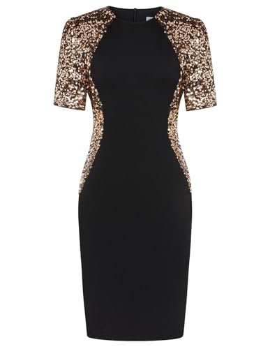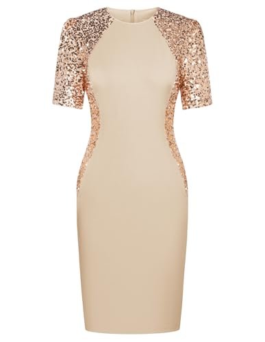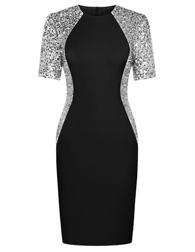 GRACE KARIN Paljettklänning för kvinnor, elegant rund hals,...